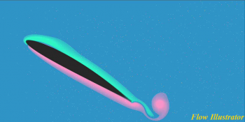 ♦ Flow past the same airfoil at a later time. There is a substantial region of separation.
